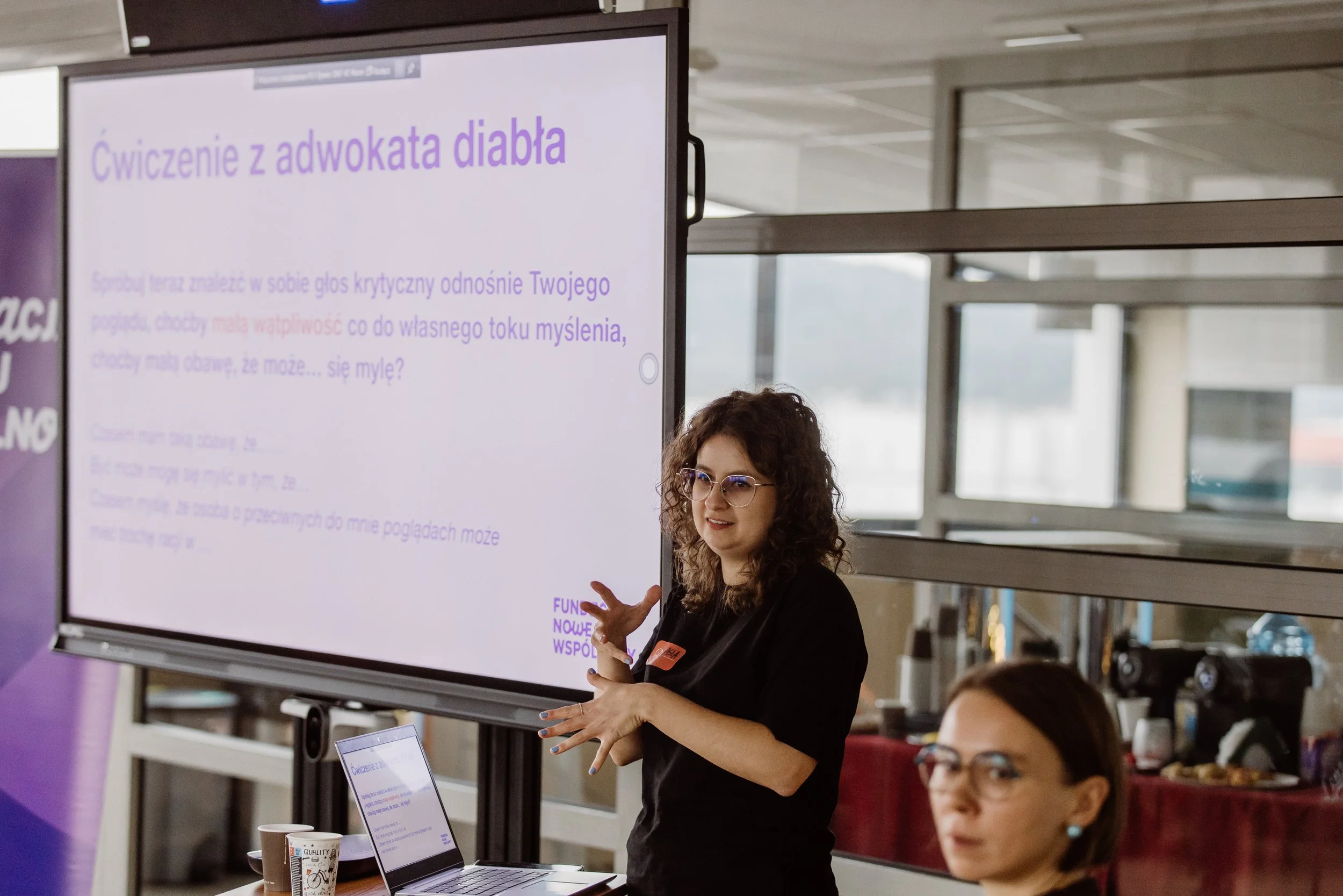 Prowadzimy Treningi Dobrej Rozmowy – uczymy, jak ze sobą rozmawiać, gdy mamy różnice poglądów. Pokazujemy, jak słuchać innych, jak wyrażać swoje zdanie i jak radzić sobie z emocjami w rozmowie
