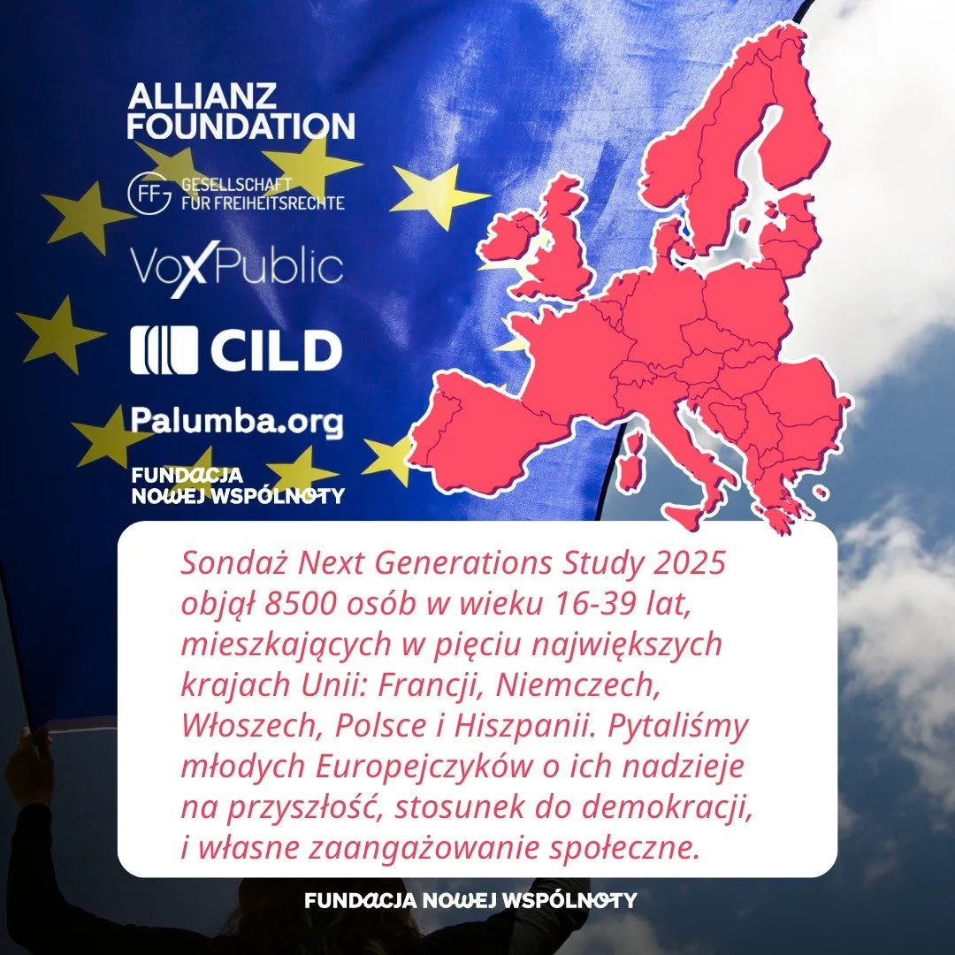 Pamiętacie niedawne badanie FNW x Allianz Foundation o młodych w Europie? Raport „Między nostalgią a nowymi horyzontami” opisuje wizje przyszłości, postawy polityczne i formy zaangażowania obywatelskiego młodych osób w pięciu krajach Europy: Francji, Niemczech, Hiszpanii, Włoszech i Polsce.