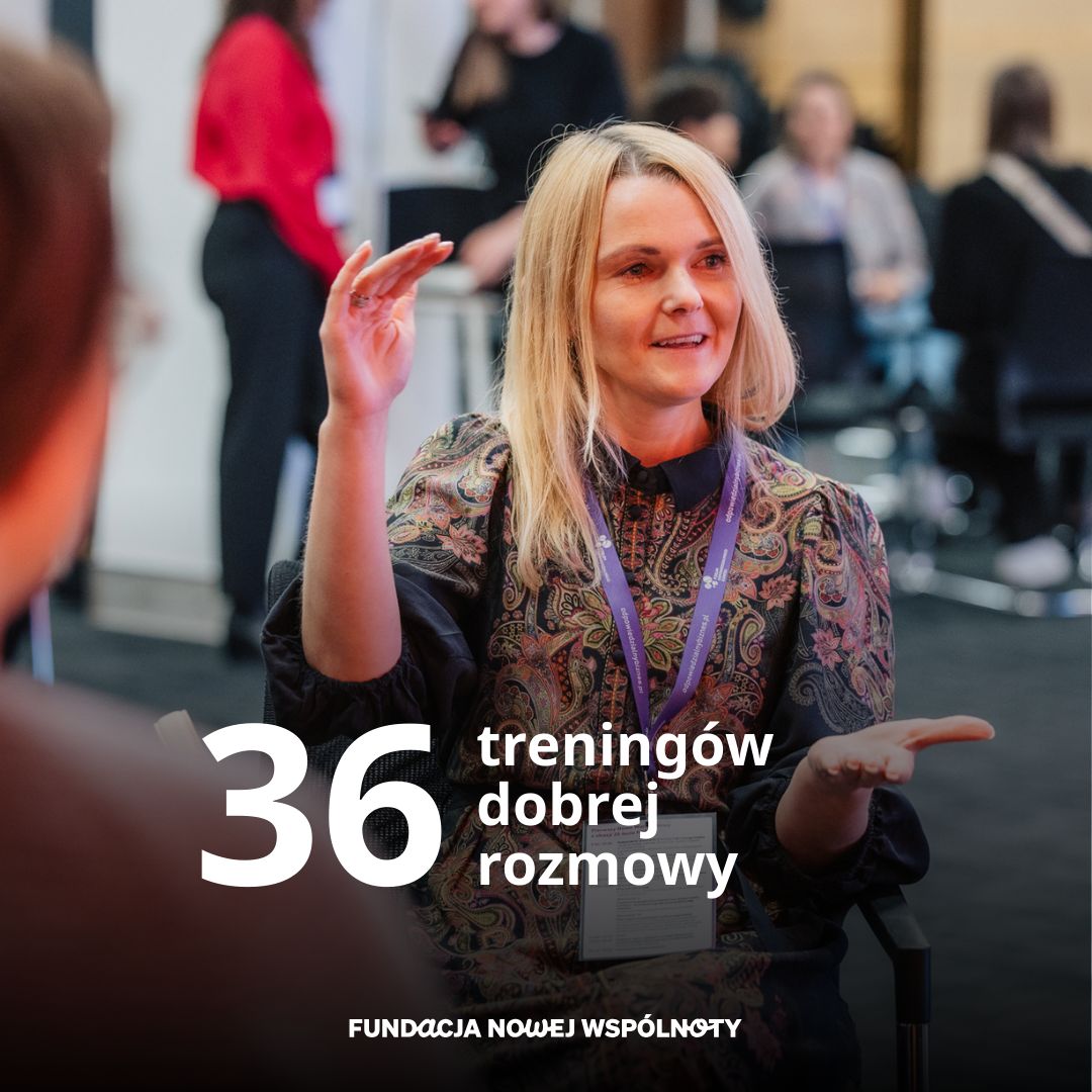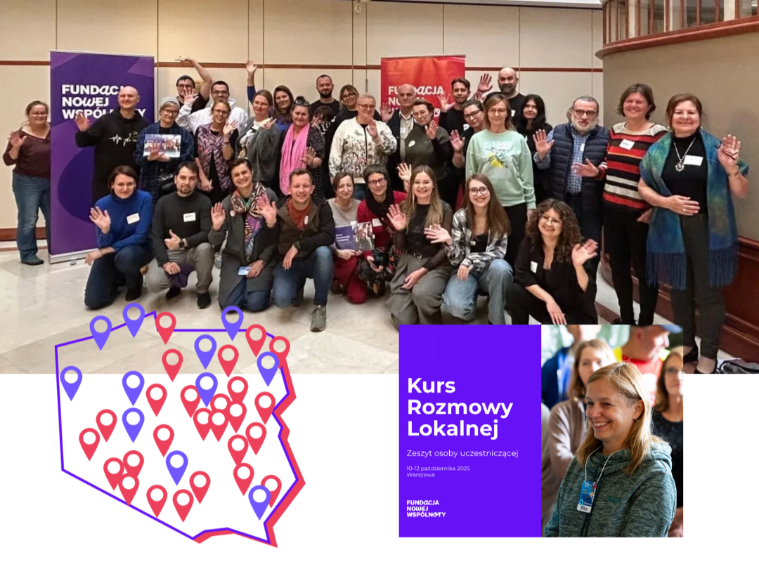 W 2025 po raz pierwszy przekazywaliśmy metodę FNW dalej. 29 działaczy i społeczników z różnych regionów Polski – z organizacji wiejskich, samorządów, bibliotek, wspólnot kościelnych i inicjatyw obywatelskich – wzięło udział w Kursie Rozmowy Lokalnej. Nauczyli się, jak prowadzić dialog na sporne tematy w małej społeczności i jak samodzielnie zorganizować Dobrą Rozmowę Lokalną – 9 takich dialogów przeprowadzili jeszcze w 2025.
