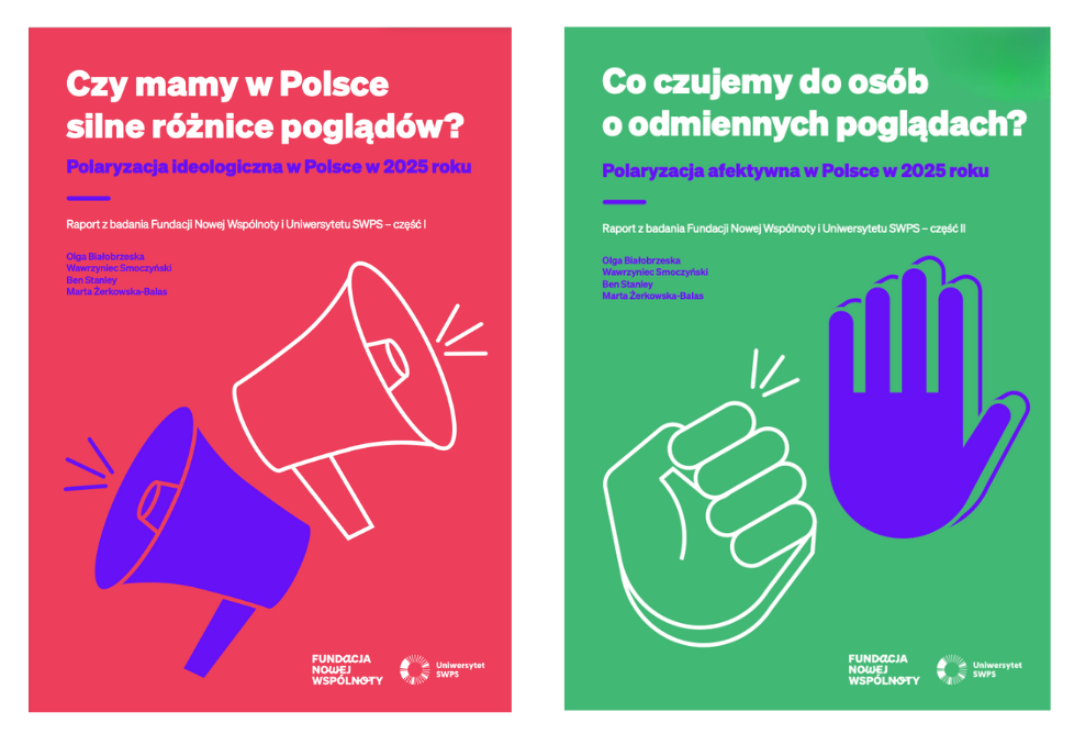 W 2025 kompleksowo zbadaliśmy polaryzację, którą zajmujemy się w FNW. Razem z Uniwersytetem SWPS wykonaliśmy badanie społeczne na reprezentatywnej próbie 2351 osób, a następnie opracowaliśmy trzy raporty: o polaryzacji ideologicznej, afektywnej i odczuwanej w Polsce (ostatni zostanie opublikowany w 2026). Wyniki badania były szeroko komentowane w mediach i są podstawą do naszych dalszych działań.