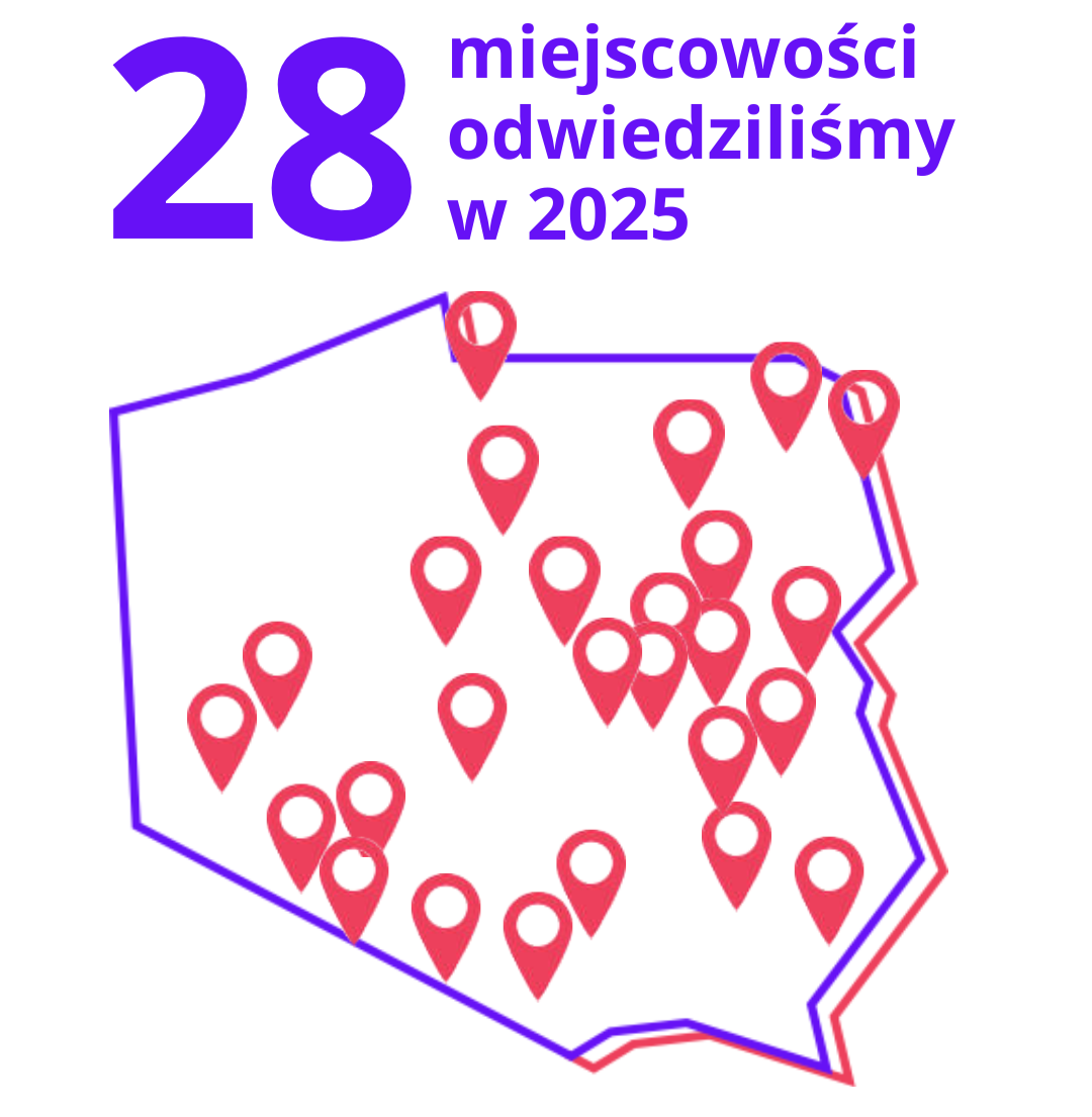W 2025 wyszliśmy z dialogami poza duże miasta. W ramach kilku projektów odwiedziliśmy łącznie 28 miejscowości, wszędzie organizując dialogi dla miejscowych społeczności. Byliśmy w miejscowościach dotkniętych powodzią na Dolnym Śląsku, w województwach Polski wschodniej, które oswajają imigrację, w gminach mierzących się ze zmianami klimatu i z budową wiatraków.